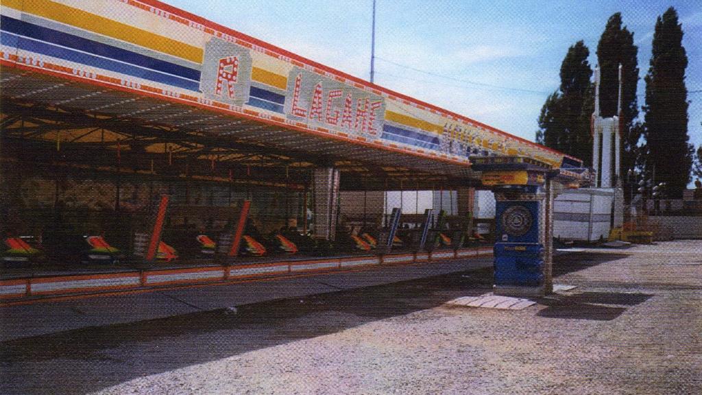 Autodrome originally manufactured by Reverchon, floor dimensions 21x11m made in aluminium in good conditions. Roof canvas six years old, pergola five years oldfront panel (fiberglass).