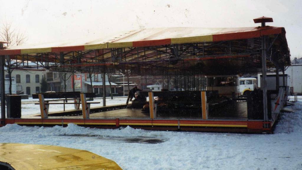 Autodrome originally manufactured by Reverchon, floor dimensions 21x10m made in steel and wood.