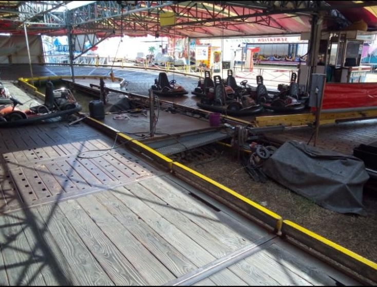 Go-Kart attraction with base dimensions 33x14 meters, with n° 10 cars, originally manufactured by Gournac in year 1996 with a quick installation procedure.