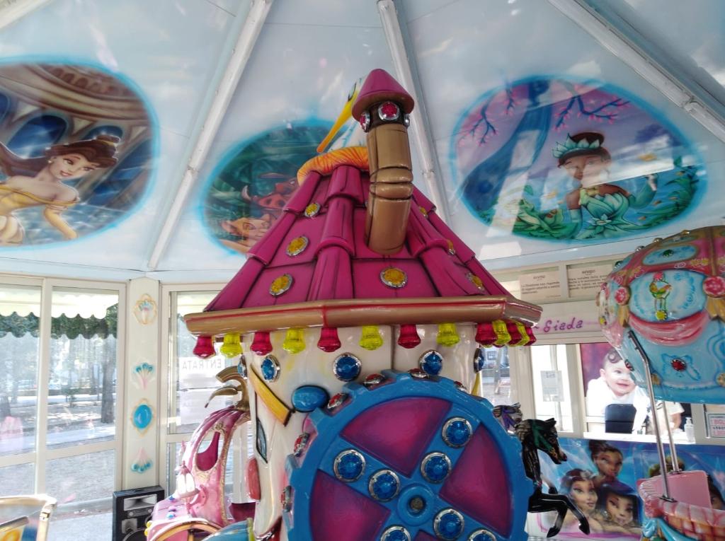 The attraction is octagonal in shape (built in 2010, dimensions: 9.10 m wide and 8.50 m deep, case 1.80 m x 2 m) featuring variously shaped figures, specifically 16 figures, each seating 41 people. The carousel is in good condition.